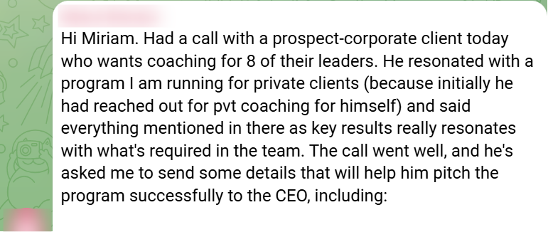 PS: If you don't yet have a corporate offer that closes in 2-4 meetings at premium fees, ask me about the Corporate Offers That Sell BETA - a new format of the program that's helped my clients turn $5k into $15k quarterly retainers and close $180k annual contracts. Now with 4x45min implementation sessions at founding-member pricing.